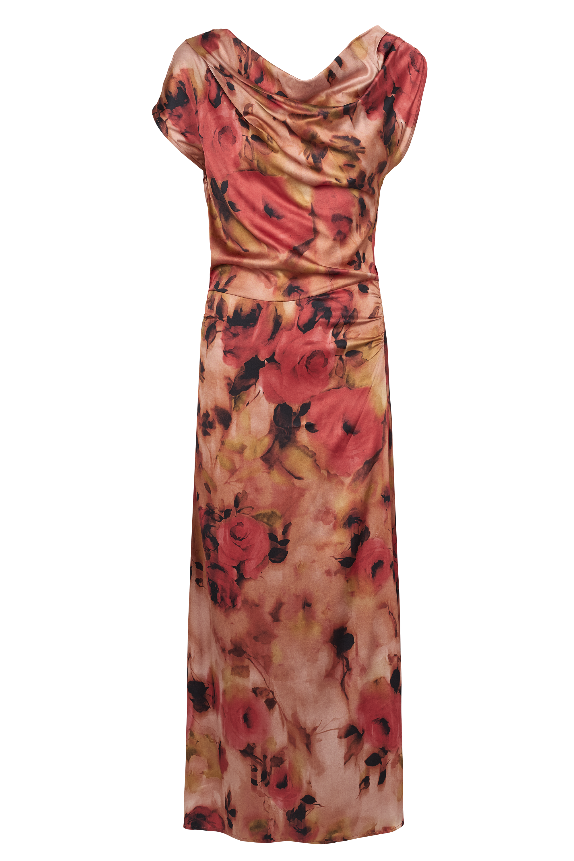 A stylish dress with a small round neckline that naturally lengthens the neck. The slightly flared hem with a slit flows beautifully as you move. The viscose dress is pleasant to the touch and does not create static. You will feel comfortable in this dress, especially in warm weather