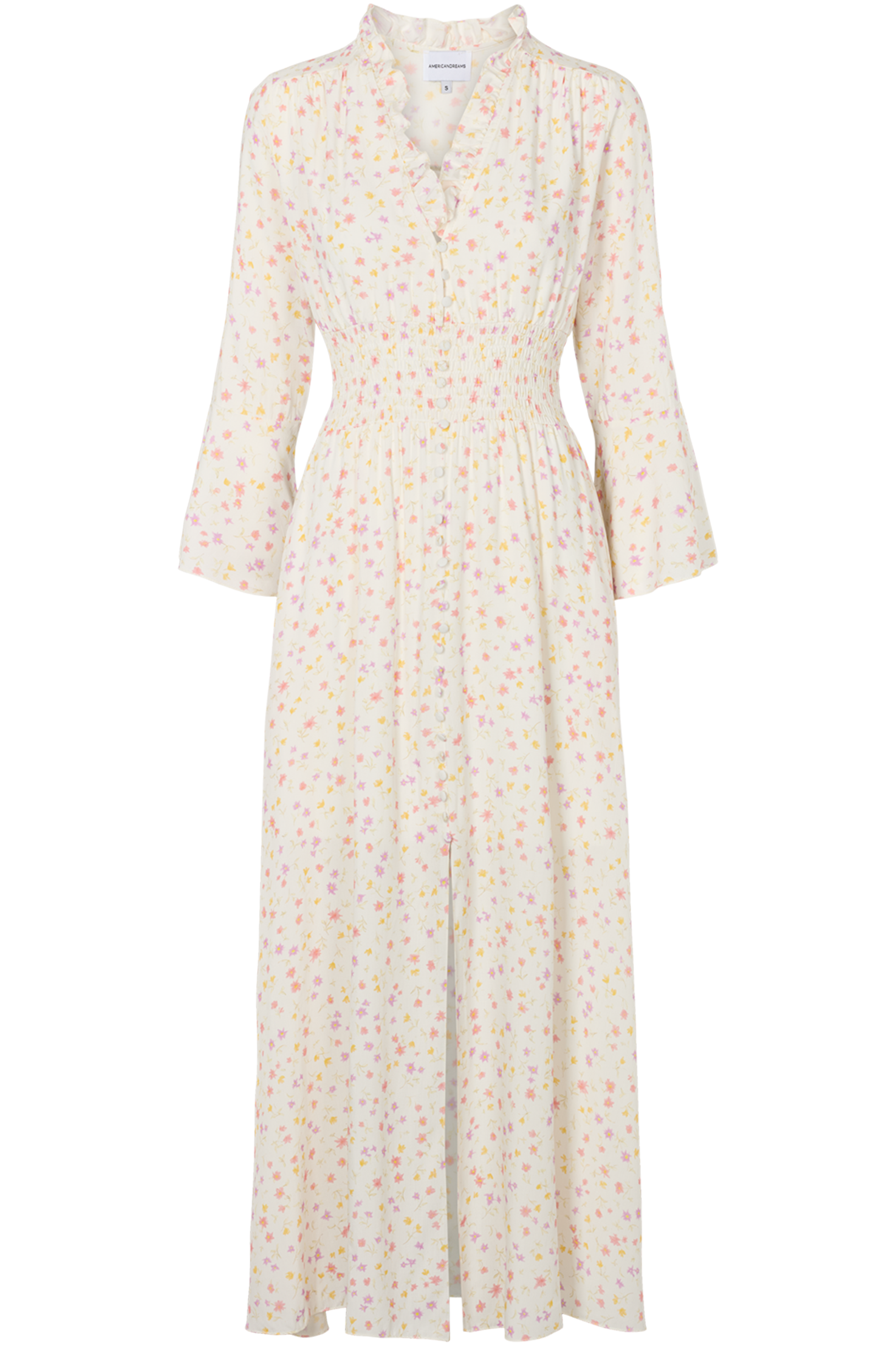 Dress with smock waist and cut out in the front. The sleeves are wide and 3/4 length. Made of 100% viscose. Sally dress has been designed with exclusive details such as buttons in the front and frill hem by the neck. We recommend wearing it this season with tights and a pair of boots or heels. Comes in solid colours and printed.